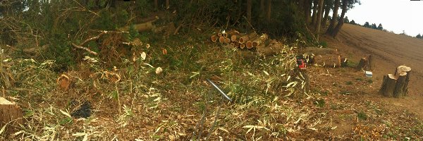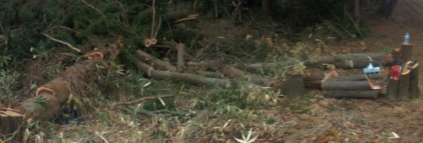 全然想像してなかったけど、前回は20cm超の木を10本ちかく切ったので、密集して倒れてて片付けが大変!