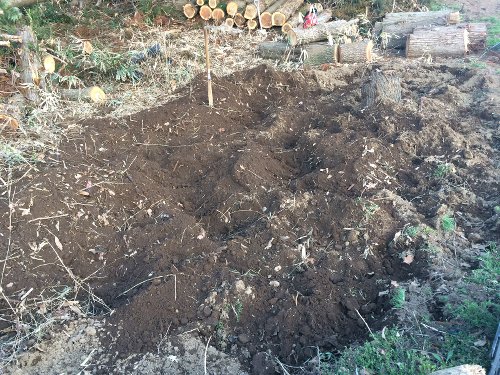 前回、畑作りのために日当たり良好の場所の木を切り倒して、倒した木を玉切りして片付けましたので、今回は、耕して何かを植えよう!っていう作戦です。