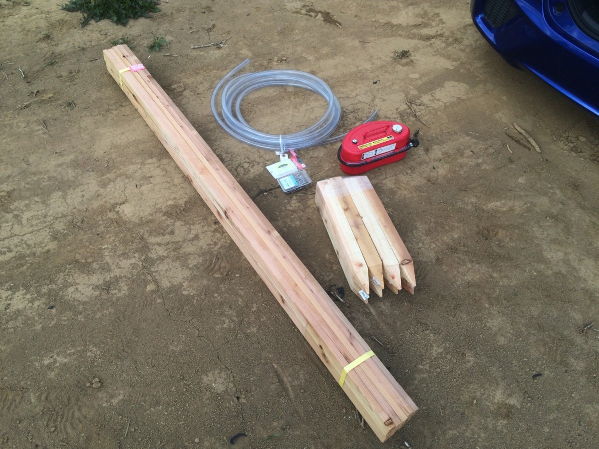 今回の目的は、ひまわりの種を蒔き切ることと、小屋(倉庫)作りの準備を進めること、発電機の動作テストすること、などなどなので、小屋をつくるための材料を準備してきました。