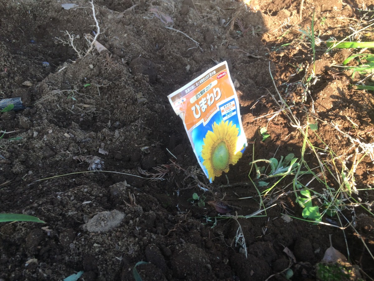 ひまわりの種蒔く