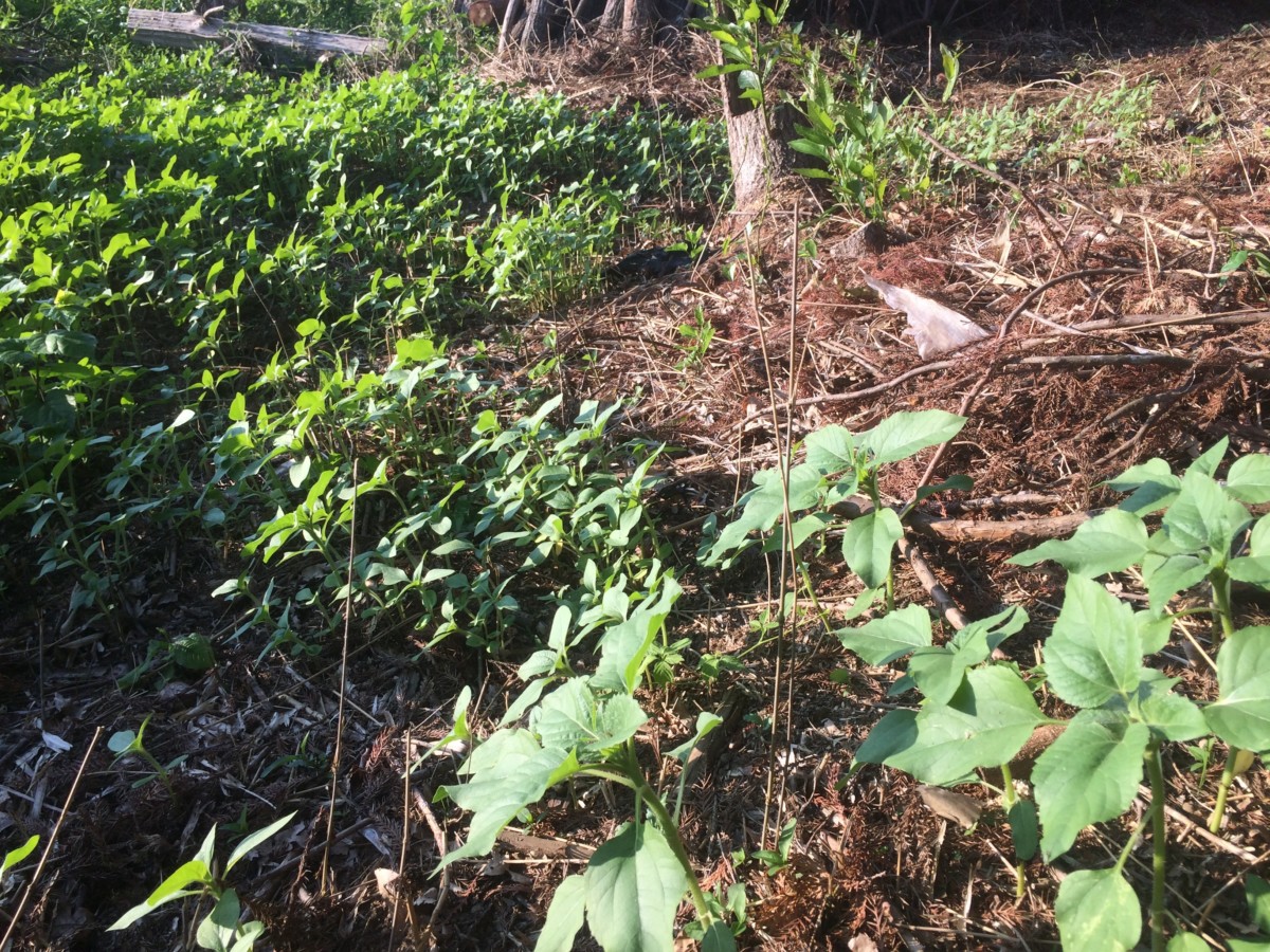 概ね密集隊形にて、ひまわりが生えてきてます。これは8月ごろに期待できそうですよー。