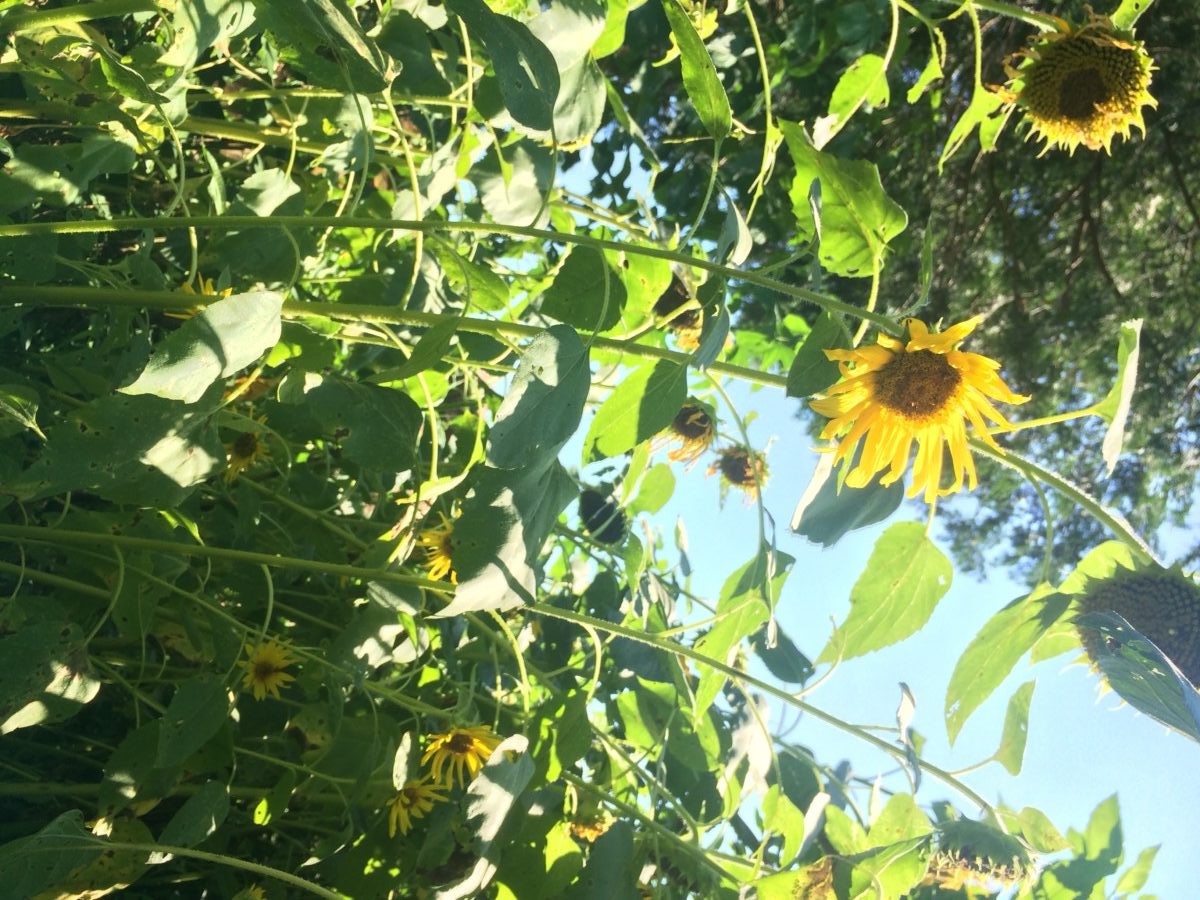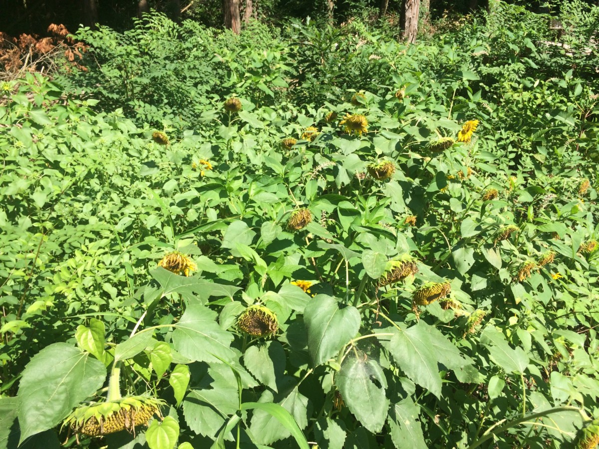 あっちこっちひまわりでモッサリ。
