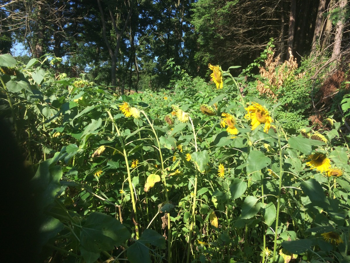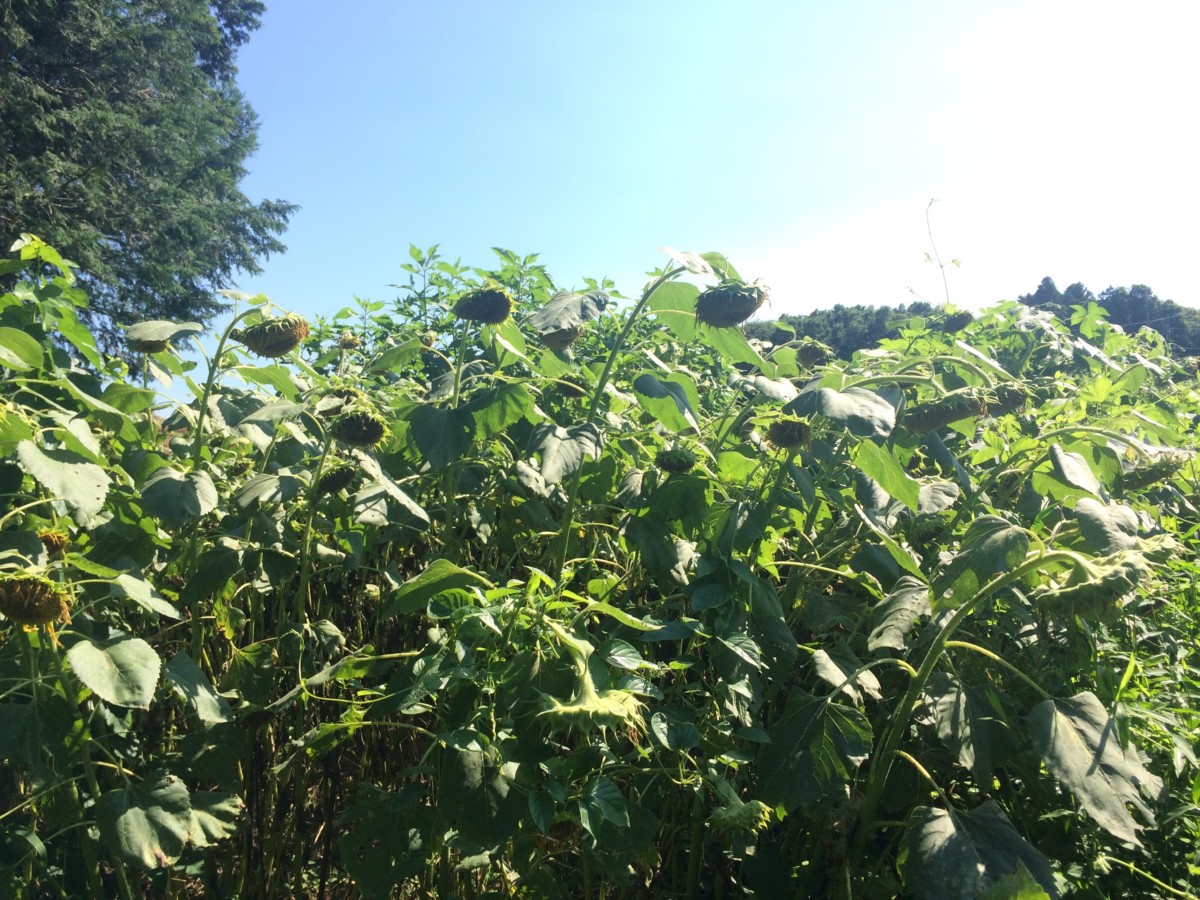 2ヶ月ぶりに1日の突貫でやってまいりました。今回の目的は、ひまわり畑の結果確認と、畑のメンテナンス、それと余裕があれば小屋の土台を設置することです。
