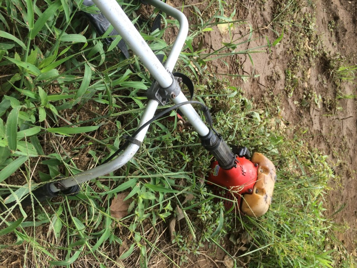 来月の初来客に向けて、夏に伸びまくりの野草を一網打尽にすることを目標にしてきたので、こういう時こそ刈払機の出番だ!