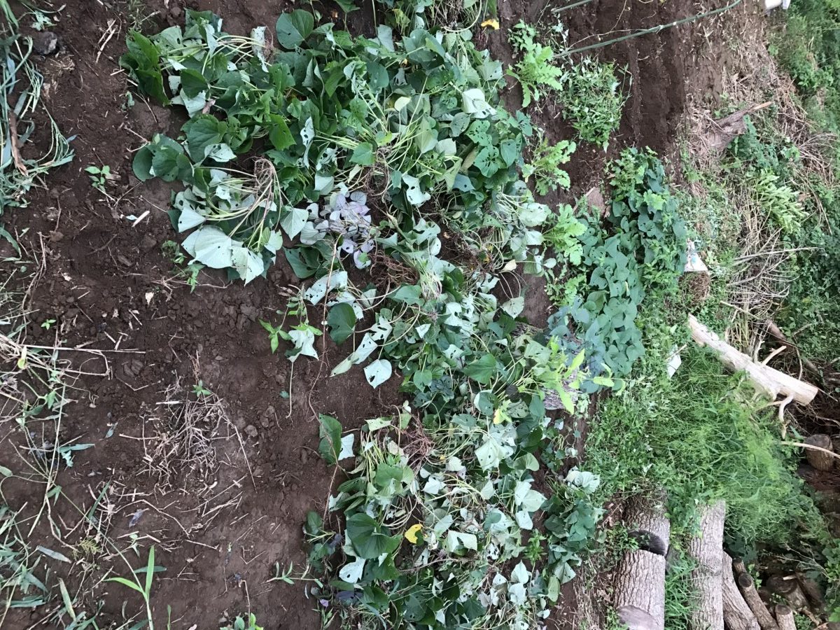 台風が沢山上陸した影響でさつまいもも10cmほど土に埋もれており、爆発的に葉が発展した代わりに完全に蔓ボケ状態でした。