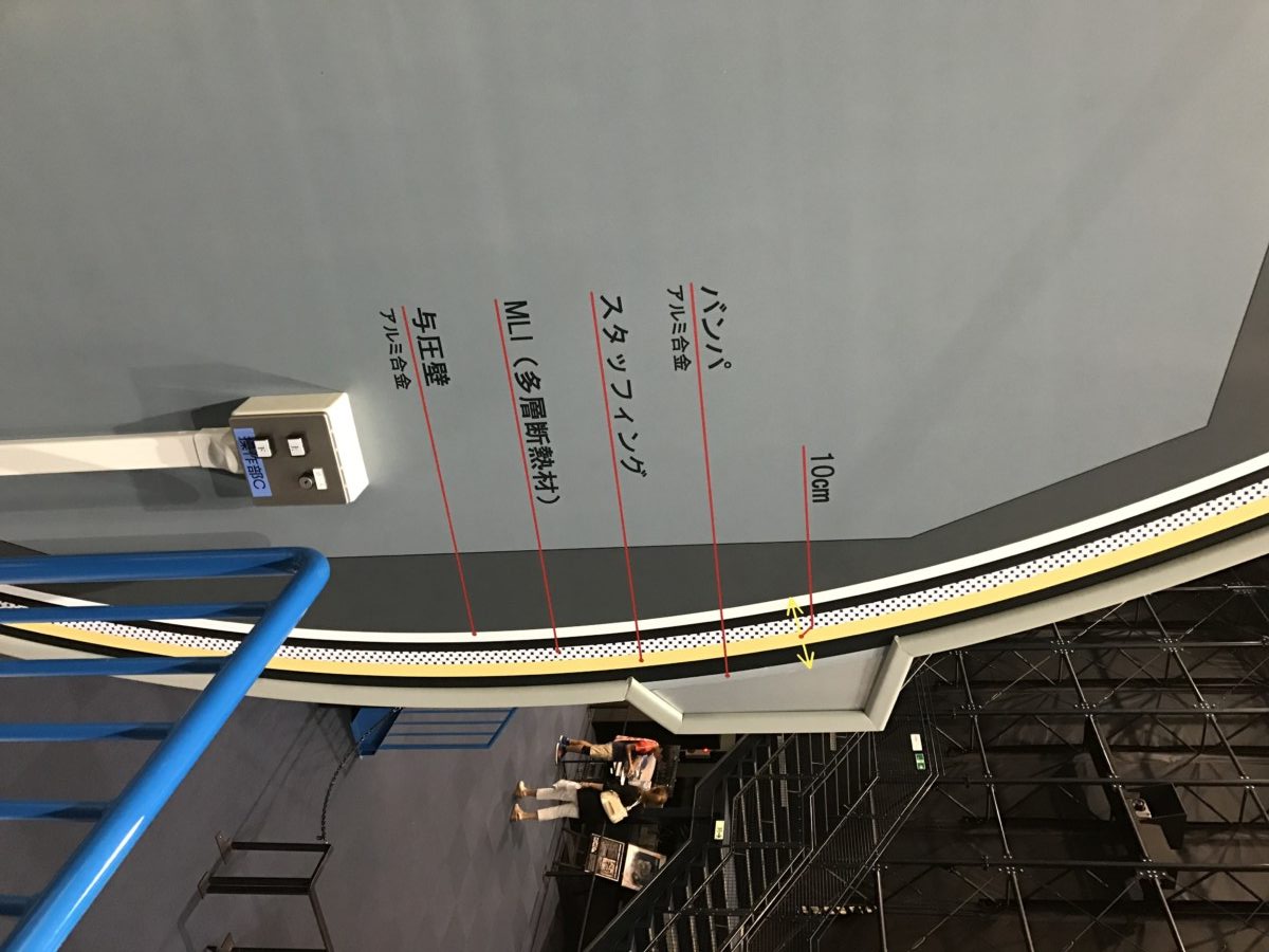 こちらは衛星の予備機と実物大のモック、結構配線むき出しなんだなー
