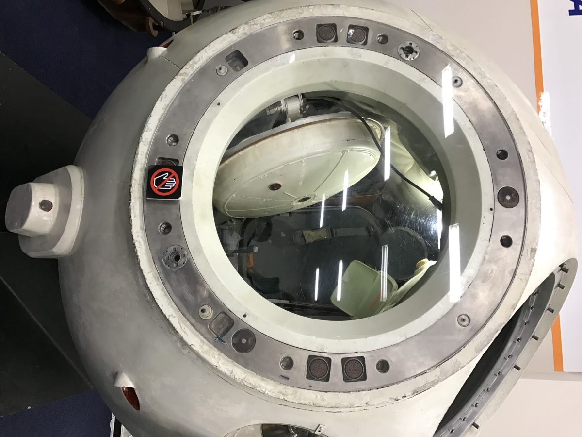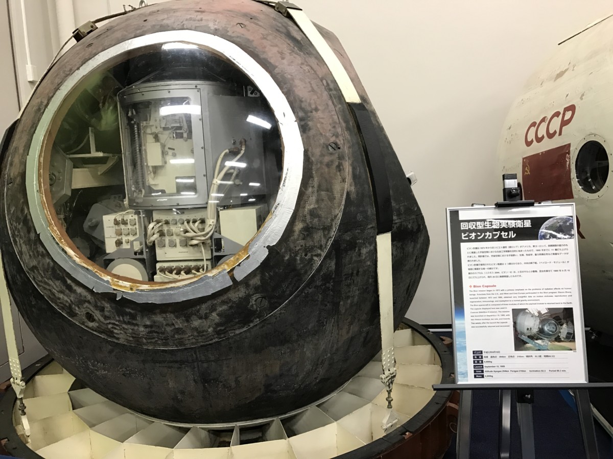 ロシアで動物を乗せて宇宙から帰ってきたポッドの展示